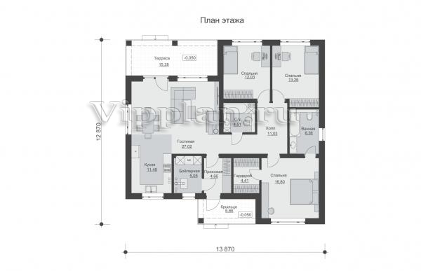 | Размеры дома: | 12.87м×13.87м |